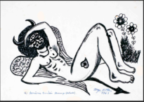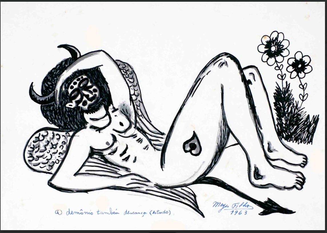Coleção Coleção Instituto Meyer Filho Item MF.00144 23/01/2023 por Anna Serafim   Documento 00144 Baixar Metadados Miniatura Nº de registroMF.00144Outros registros Outros registros 63003 Localização no InstitutoMAPOTECA 1 - GAV. 2ColeçãoII. Artes plásticasTipoDesenhoTítuloO demônio também descança (Estudo)AutoriaMeyer FilhoLocal*Florianópolis (SC)Data Década 1960 Ano 1963 DescriçãoDesenho em nanquim e caneta hidrográfica sobre papel intitulado "A Fuga ao Paraíso". A composição apresenta representação do demônio deitado e flores. Obra assinada e datada pelo artista em caneta esferográfica.IndexadoresDemônio | FlorDimensão27,6 x 21,8 cmSuportePapelTécnicaCaneta hidrográfica e nanquimBordaNão se aplicaColorNão se aplicaEstado de conservaçãoBomDanos causados porAmarelecimento | Manchas | OndulaçõesProcedimentosAcondicionado | Digitalizado | HigienizadoForma de aquisiçãoLicença de uso de direitos autorais gratuitaProcedência*Família Meyer FilhoData de aquisição Data NI Registrado porAnna Julia Borges SerafimData de registro24/01/2023Condições de ReproduçãoTodos os direitos reservados. Para utilização da imagem solicitar autorização ao Instituto Meyer Filho. Continue navegando MF.00145 MF.00140 Voltar para a página de itens
