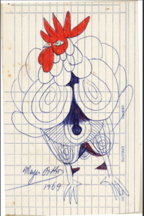 Coleção Coleção Instituto Meyer Filho Item MF.02080 03/10/2022 por Anna Serafim   Documento 02080 Baixar Metadados Miniatura Nº de registroMF.02080Outros registros Outros registros 1231G Outros registros 69049 Localização no InstitutoARQUIVO 1 - GAV. 4ColeçãoII. Artes plásticasTipoDesenhoTítuloNIAutoriaMeyer FilhoLocal*Florianópolis (SC)Data Década 1960 Ano 1969 DescriçãoDesenho em caneta esferográfica e lápis de cera vermelho sobre papel cartão de galo. Obra datada e assinada pelo artista em esferográfica.IndexadoresGalosDimensão11,6 x 17,5 cmSuportePapel cartãoTécnicaCaneta esferográfica e lápis de cera sobre papelBordaNão se aplicaColorNão se aplicaEstado de conservaçãoBomDanos causados porDesgaste | Manchas | OxidaçãoProcedimentosAcondicionado | Digitalizado | HigienizadoForma de aquisiçãoLicença de uso de direitos autorais gratuitaProcedência*Família Meyer FilhoData de aquisição Circa NI ObservaçõesObra realizada em papel proveniente do Banco do Brasil.Registrado porAnna Julia Borges SerafimData de registro03/10/2022Condições de ReproduçãoTodos os direitos reservados. Para utilização da imagem solicitar autorização ao Instituto Meyer Filho. Continue navegando MF.02079 MF.02081 Voltar para a página de itens