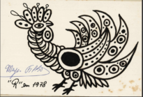 Coleção Coleção Instituto Meyer Filho Item MF.02147 05/10/2022 por Anna Serafim   Documento 02147 Baixar Metadados Miniatura Nº de registroMF.02147Outros registros Outros registros S/D Outros registros 1431G Localização no InstitutoARQUIVO 1 - GAV. 4ColeçãoII. Artes plásticasTipoDesenhoTítuloNIAutoriaMeyer FilhoLocal*Florianópolis (SC)Data Década 1970 Ano 1978 DescriçãoDesenho em caneta hidrográfica sobre papel, aderido à papel cartão, de galo estilizado. A obra não possui data, mas apresenta inscrição "R" - refeito em 1978 e foi assinada pelo artista em caneta esferográfica.IndexadoresGalosDimensão16 x 11 cmSuportePapel | Papel cartãoTécnicaCaneta hidrográfica sobre papelBordaNão se aplicaColorNão se aplicaEstado de conservaçãoBomDanos causados porAmarelecimento | Manchas | Marcas de cola | Oxidação | Vincos e dobrasProcedimentosAcondicionado | Digitalizado | HigienizadoForma de aquisiçãoLicença de uso de direitos autorais gratuitaProcedência*Família Meyer FilhoData de aquisição Circa NI Registrado porAnna Julia Borges SerafimData de registro05/10/2022Condições de ReproduçãoTodos os direitos reservados. Para utilização da imagem solicitar autorização ao Instituto Meyer Filho. Continue navegando MF.02146 MF.02148 Voltar para a página de itens