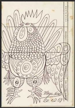 Coleção Coleção Instituto Meyer Filho Item MF.02153 05/10/2022 por Michelle Witkowski   Documento 02153 Baixar Metadados Miniatura Nº de registroMF.02153Outros registros Outros registros 1034G Localização no InstitutoARQUIVO 1 - GAV. 4ColeçãoII. Artes plásticasTipoDesenhoAutoriaMeyer FilhoLocal*Florianópolis (SC)Data Data 20/12/1969 Década 1960 Ano 1969 DescriçãoDesenho em caneta esferográfica preto de galo sobre papel. Obra não contém assinatura e nem data.IndexadoresGalosDimensão10,3 x 15,4 cmSuportePapelTécnicaCaneta esferográfica sobre papelBordaNão se aplicaColorNão se aplicaEstado de conservaçãoBomDanos causados porManchas | Oxidação | Vincos e dobrasProcedimentosAcondicionado | Digitalizado | HigienizadoForma de aquisiçãoLicença de uso de direitos autorais gratuitaProcedência*Família Meyer FilhoData de aquisição Circa NI Registrado porMichelle WitkowskiData de registro05/10/2022Condições de ReproduçãoTodos os direitos reservados. Para utilização da imagem solicitar autorização ao Instituto Meyer Filho. Continue navegando MF.02152 MF.02154 Voltar para a página de itens