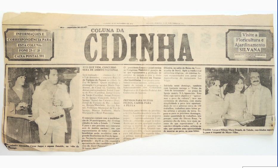 MF.02208.4 Recorte da coluna da Cidinha, 27/11/1976, sobre a primeira exposição do artista em Cascavel (PR) (19,3x24,3cm)