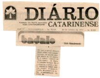 MF.02306.1 Recorte de jornal de 18/06/1977, destaque para coluna "Badalo" com matéria intitulada "Rapidinhas" por Odir Nascimento sobre lançamento de livros de Maria de Lourdes Krieger (14,7 x 10,9 cm).