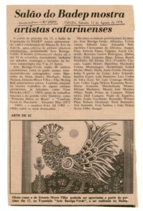 Coleção Coleção Instituto Meyer Filho Item MF.02353 25/11/2022 por Anna Serafim   Documento MF.02353 Baixar Metadados Miniatura Nº de registroMF.02353Localização no InstitutoMAPOTECA 1 - GAV. 8 - PASTA 10ColeçãoIII. PeriódicosTipoJornalTítuloGazeta do Povo (PR) 1978AutoriaNILocal*Curitiba (PR)Data Data 12/08/1978 Década 1970 Ano 1978 DescriçãoRecorte de jornal entitulado "Salão do Badep mostra artistas catarinenses" em 12 de agosto de 1978, matéria contém obra de Meyer FilhoIndexadoresArtista Catarinense | Meyer FilhoDimensão13,9x21,9 cmSuportePapel de jornalTécnicaImpressão sobre papel jornalBordaNão se aplicaColorNão se aplicaEstado de conservaçãoBomDanos causados porAmarelecimento | Manchas | PerfuraçãoProcedimentosAcondicionado | Digitalizado | HigienizadoForma de aquisiçãoLicença de uso de direitos autorais gratuitaProcedência*Família Meyer FilhoRegistrado porMichelle WitkowskiData de registro14/11/2022Condições de ReproduçãoTodos os direitos reservados. Para utilização da imagem solicitar autorização ao Instituto Meyer Filho. Continue navegando MF.02410 MF.02355 Voltar para a página de itens