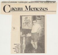 MF.02365.4 Recorte de 02/01/1991, caderno de Variedades, da coluna de Cacau Menezes com fotografia de Meyer Filho (14,5 x 13,4 cm).