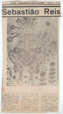 MF.02396.2 Recorte de jornal de 05/07/1973 com destaque para matéria de autoria de Sebastião Reis, intitulada "Vernisasse no Banco do Brasil". Apresenta inscrição do artista com data. (13,6 x 20,1 cm)
