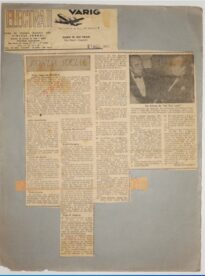 MF.02459.1 Recorte de jornal de 21/08/1963 aderido a um papel cartão com destaque para coluna "Ronda social" destacando o trecho sobre exposição na casa do artista plástico. (23,7 x 33,9 cm)