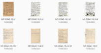 MF.02645.21 Listas de obras diversas ambas de autoria de Meyer Filho (14,2 x 20,4 cm). Conjunto foi bipartido em: MF.02645.21.1 (16,2 x 21,5), MF.02645.21.2 (15,7 x 10,5 cm), MF.02645.21.3 (14,2 x 20,4 cm), MF.02645.21.4 (24,8 x 33,2 cm), MF.02645.21.5 (25 x 32,7 cm), MF.02645.21.6 (23,7 x 32,5 cm), MF.02645.21.7 (14 x 20,4 cm), MF.02645.21.8 (16 x 21,5 cm)