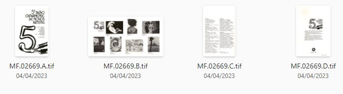 Coleção Coleção Instituto Meyer Filho Item MF.02669 28/11/2022 por Ana Julia Patricio   Documento 2669 Baixar Metadados Miniatura Nº de registroMF.02669Localização no InstitutoMAPOTECA 1 - GAV. 9ColeçãoII. Artes plásticasTipoConviteTítulo5º Salão catarinense de novos artistasAutoriaNILocal*Florianópolis (SC)Data Década Sem data DescriçãoConvite do 5º Salão catarinense de novos artistas, sem data.Indexadores5º Salão catarinense de novos artistasDimensão13,4 x 21,3 cmSuportePapelTécnicaImpressão sobre papelBordaNão se aplicaColorNão se aplicaEstado de conservaçãoBomDanos causados porOxidação | Vincos e dobrasProcedimentosAcondicionado | Digitalizado | HigienizadoForma de aquisiçãoLicença de uso de direitos autorais gratuitaProcedência*Família Meyer FilhoRegistrado porAna Julia Vieira PatrícioData de registro28/11/2022Condições de ReproduçãoTodos os direitos reservados. Para utilização da imagem solicitar autorização ao Instituto Meyer Filho. Continue navegando MF.02662 MF.02641 Voltar para a página de itens