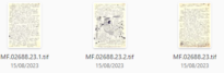 MF.02688.19 Manuscrito com duas páginas em nanquim sobre papel intitulado "O Banco do Brasil, o cidadão e o artista plástico Meyer Filho". Apresenta desenhos de galos, figura masculina e seres híbridos. Possui data e assinaturas de Meyer Filho artista e cidadão (21,8 x 33 cm). Apresenta fotocópia MF.02688.19.2 (34,3 x 35 cm) e MF.02688.19.2.1 (21,6 x 35,3 cm)