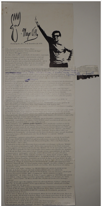 Coleção Coleção Instituto Meyer Filho Item MF.02696 12/12/2022 por Anna Serafim   Documento 02696 Baixar Metadados Miniatura Nº de registroMF.02696Localização no InstitutoMAPOTECA 2 - GAV. 4ColeçãoII. Artes plásticasTipoManuscritoTítuloNIAutoriaNILocal*Florianópolis (SC)Data Data Sem data DescriçãoImpressão em papel de biografia de Meyer Filho com grifos a caneta, apresenta outro exemplar MF.02696.1. Possui fotocópia de parte da biografia (MF.02696.2) e fotocópia de manuscrito com biografia de autoria de Meyer Filho (MF.02696.3).IndexadoresManuscrito | Meyer FilhoDimensão21,6 x 31,4 cmSuportePapelTécnicaImpressão sobre papelBordaNão se aplicaColorNão se aplicaEstado de conservaçãoBomDanos causados porAmarelecimento | Ferrugem | Grampo | Papel aderido | SujidadesProcedimentosAcondicionado | Digitalizado | HigienizadoForma de aquisiçãoLicença de uso de direitos autorais gratuitaProcedência*Família Meyer FilhoRegistrado porAna Julia Vieira PatrícioData de registro12/12/2022 Continue navegando MF.02619 MF.02799 Voltar para a página de itens
