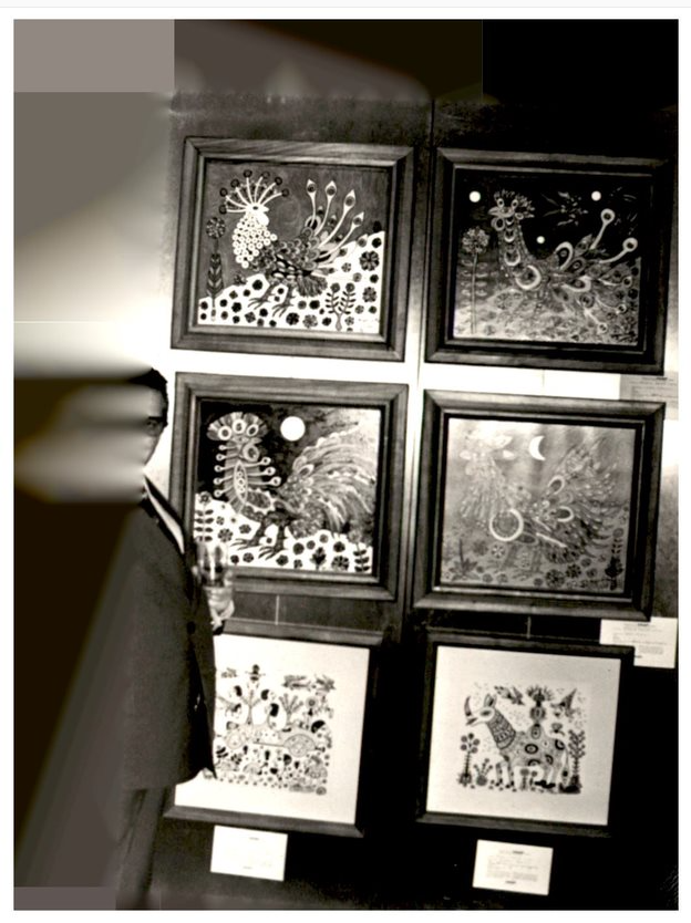 Conjunto de fotografias de exposição coletiva que teve Meyer Filho como participante, possivelmente na ALESC, com os seguintes registros:
