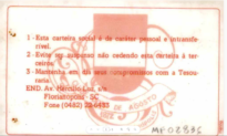 Coleção Coleção Instituto Meyer Filho Item MF.02836 16/12/2022 por Ana Julia Patricio   Documento 02836 Baixar Metadados Miniatura Nº de registroMF.02836Localização no InstitutoARQUIVO 2 - GAV. 2ColeçãoVII. Documentos PessoaisTipoCartãoTítuloCartão de Sócio - Clube Doze de AgostoAutoriaNILocal*Florianópolis (SC)Data Data Sem data DescriçãoCarteira de sócio de Meyer Filho no Clube Doze de AgostoIndexadoresClube Doze de Agosto | Meyer Filho | Sócio PatrimonialDimensão8,5 x 5,4 cmSuportePlásticoTécnicaImpressão sobre plásticoColorNão se aplicaEstado de conservaçãoBomDanos causados porDesgaste | FerrugemProcedimentosAcondicionado | Digitalizado | HigienizadoForma de aquisiçãoLicença de uso de direitos autorais gratuitaProcedência*Família Meyer FilhoRegistrado porAna Julia Vieira PatrícioData de registro16/12/2022 Continue navegando MF.02837 MF.02844 Voltar para a página de itens