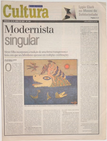 MF.02895.6 Página de jornal de 28/04/2007 com destaque para página 2 com matéria intitulada "Modernista singular". Possui reprodução de obra do artista (29 x 38,1 cm)