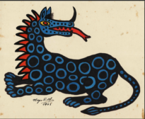 Coleção Coleção Instituto Meyer Filho Item MF.02964 11/01/2023 por Ana Julia Patricio   Documento 02964 Baixar Metadados Miniatura Nº de registroMF.02964Outros registros Outros registros 65013 Localização no InstitutoARQUIVO 1 - GAV. 4ColeçãoII. Artes plásticasTipoDesenho | PinturaTítuloNIAutoriaMeyer FilhoLocal*Florianópolis (SC)Data Década 1960 Ano 1965 DescriçãoDesenho em guache nas cores azul, vermelho e preto sobre papel, de animal hibrido. Obra assinada e datadaIndexadoresAnimal | Animal com chifre | Desenho | HíbridosDimensão25,3 x 19,5 cmSuportePapelTécnicaGuache sobre papelBordaNão se aplicaColorNão se aplicaEstado de conservaçãoRegularDanos causados porAmarelecimento | Manchas | Marcações | OxidaçãoProcedimentosAcondicionado | Digitalizado | HigienizadoHistórico do acervoA obra participou da exposição "Arquivos implacáveis Meyer Filho" ocorrida entre setembro e dezembro de 2022 no Museu de Arte Moderna de Santa Catarina - MASCRegistrado porAna Julia Vieira PatrícioData de registro11/01/2023 Continue navegando MF.00023 MF.02965 Voltar para a página de itens