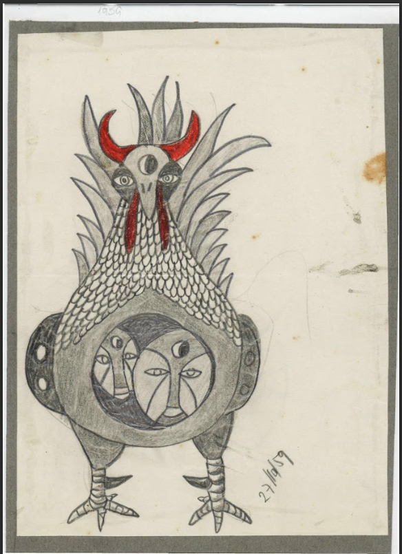 Coleção Coleção Instituto Meyer Filho Item MF.03078 23/01/2023 por Anna Serafim   Documento 03078 Baixar Metadados Miniatura Nº de registroMF.03078Outros registros Outros registros 59039 Outros registros 022 G Localização no InstitutoMAPOTECA 1 - GAV. 3ColeçãoII. Artes plásticasTipoDesenhoTítuloNIAutoriaMeyer FilhoLocal*Florianópolis (SC)Data Data 27/10/59 Década 1950 Ano 1959 DescriçãoDesenho em grafite e lápis de cor vermelho sobre papel, aderido a papel cartão, de galo estilizado. Obra datada mas não assinada.IndexadoresDesenho | GalosDimensão16,4 x 23,8 cmSuportePapelTécnicaGrafite e lápis de cor sobre papelBordaNão se aplicaColorNão se aplicaEstado de conservaçãoBomDanos causados porAmarelecimento | Colagem | Manchas | Oxidação | Papel aderido | SujidadesProcedimentosAcondicionado | Digitalizado | HigienizadoForma de aquisiçãoLicença de uso de direitos autorais gratuitaProcedência*Família Meyer FilhoData de aquisição Data NI Registrado porGisele de Souza MachadoData de registro30/01/2023 Continue navegando MF.03107 MF.03074 Voltar para a página de itens