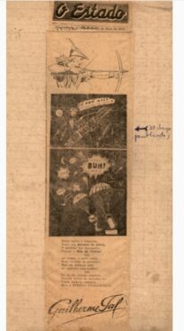 Coleção Coleção Instituto Meyer Filho Item MF.03134 17/01/2023 por Ana Julia Patricio   Documento MF.03134 Baixar Metadados Miniatura Nº de registroMF.03134Localização no InstitutoMAPOTECA 1 - GAV. 8 - PASTA 6ColeçãoIII. PeriódicosTipoJornalTítuloO Estado (SC) 1953 com grifoAutoriaNILocal*Florianópolis (SC)Data Data 13/05/1953 Década 1950 Ano 1953 DescriçãoRecorte de jornal de 13/05/1953 aderido a uma folha pautada, com charge de Meyer Filho publicada. Possui grifo do artista: "3ª charge publicada" mais seta.IndexadoresCharge | Meyer Filho | O EstadoDimensão19,7 x 37,3 cmSuportePapel jornalTécnicaImpressão sobre papel jornalBordaNão se aplicaColorNão se aplicaEstado de conservaçãoBomDanos causados porAmarelecimento | Manchas | Ondulações | Oxidação | RasgoProcedimentosAcondicionado | Digitalizado | Higienizado | Realizar conservação curativaForma de aquisiçãoLicença de uso de direitos autorais gratuitaProcedência*Família Meyer FilhoRegistrado porAna Julia Vieira PatrícioData de registro17/01/2023 Continue navegando MF.03129 MF.03142 Voltar para a página de itens
